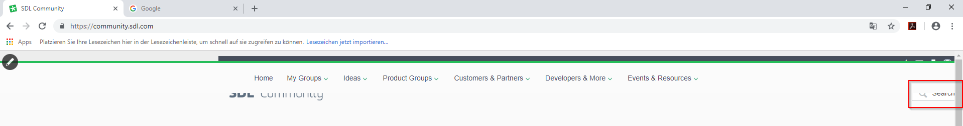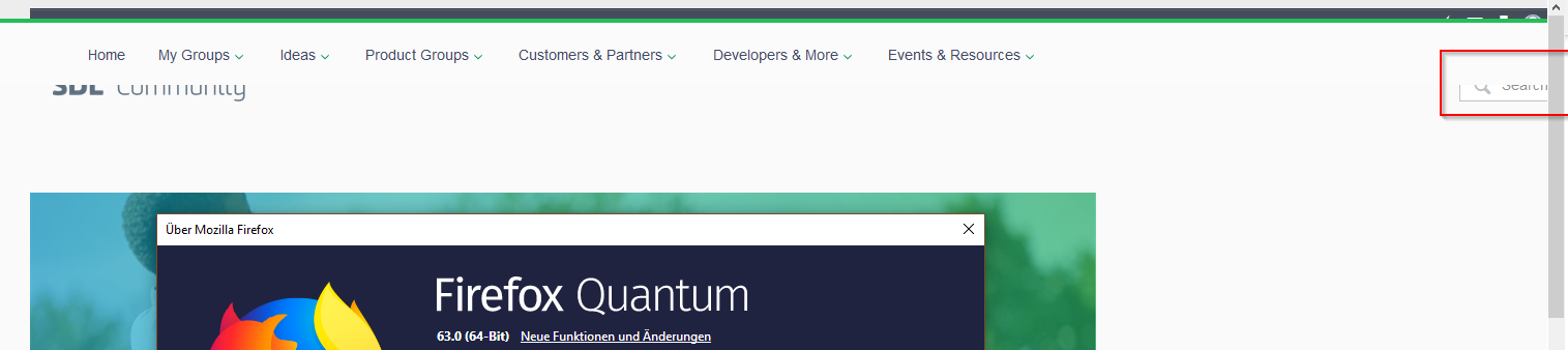 When I start typing text in the Search field of SDL Community, the field moves to the far right of the browser window and is overlapped by both the top banner and the right scrollbar. It is thus difficult to read the text typed to the search field. See image attached