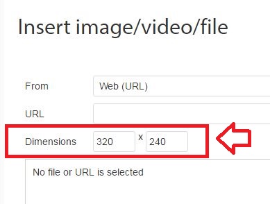 There is no option to take away the 320x240 default dimension. (as seen in the image you attached)