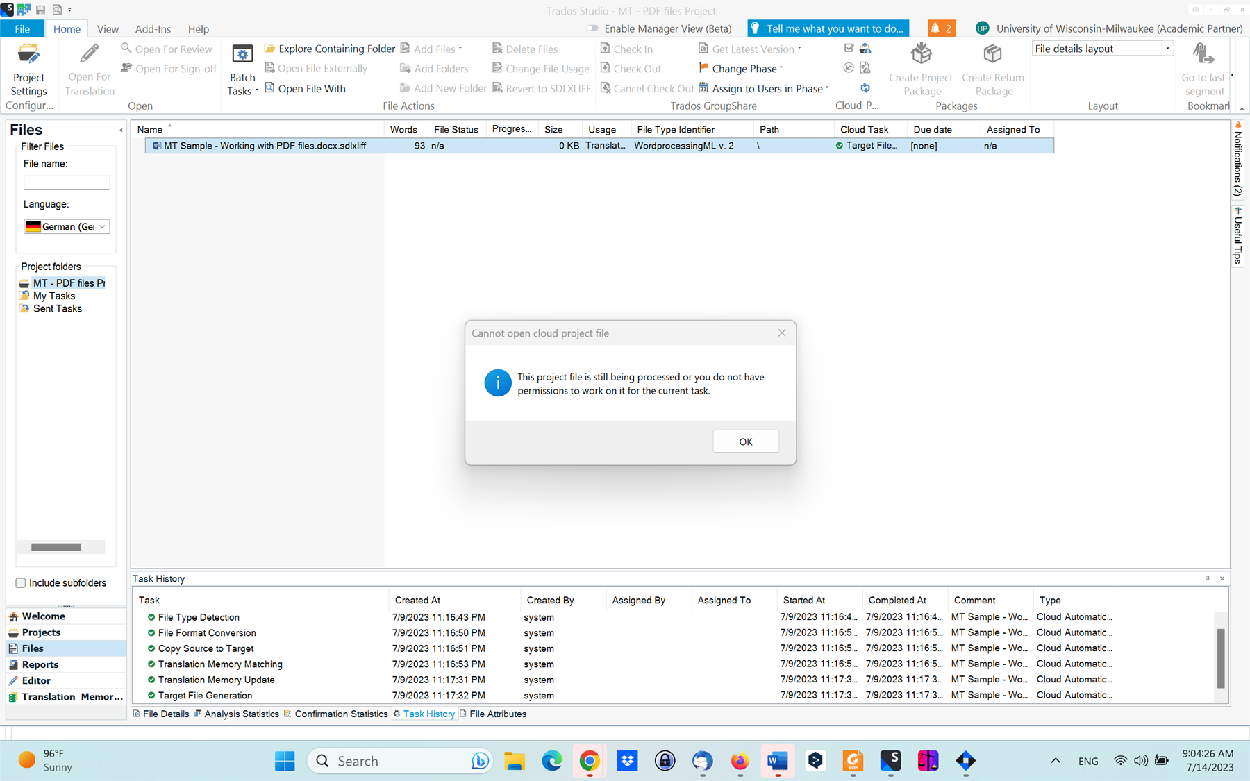 Unfortunately, unless I get my question resolved, I cannot proceed any further with the Trados Studio 2022 Level 1 eLearning course. That's because each new section builds on the previous one. So I am currently stuck.