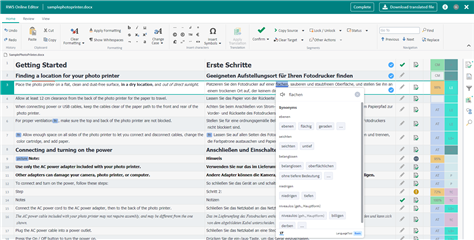 - Double-clicking a term result in the Online Editor sidebar will now add it to the target segment. This makes interaction with known terminology faster. As before, known terms are also available in the AutoSuggest functionality for fast insertion into target segments.