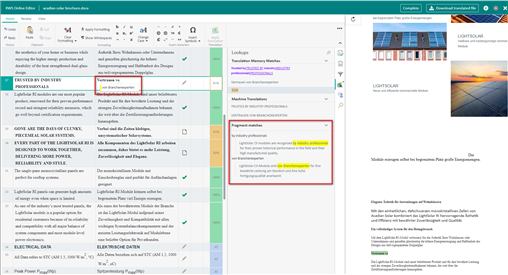 upLIFT technology has been available in Trados Studio for a few years. We are glad to let you know that we are leveraging this next-gen translation memory technology in our cloud offerings more and more. As a key milestone on this journey, Online Editor can now display fragment match results coming from subsegment searching. You will find these results in the Lookup pane. This capability can help users leverage translation memory content to speed up translation whenever there is no fuzzy match or a machine translation match that needs editing. For more information on upLIFT technology, see https://docs.sdl.com/813470/577394/trados-studio-2021-sr1/uplift.