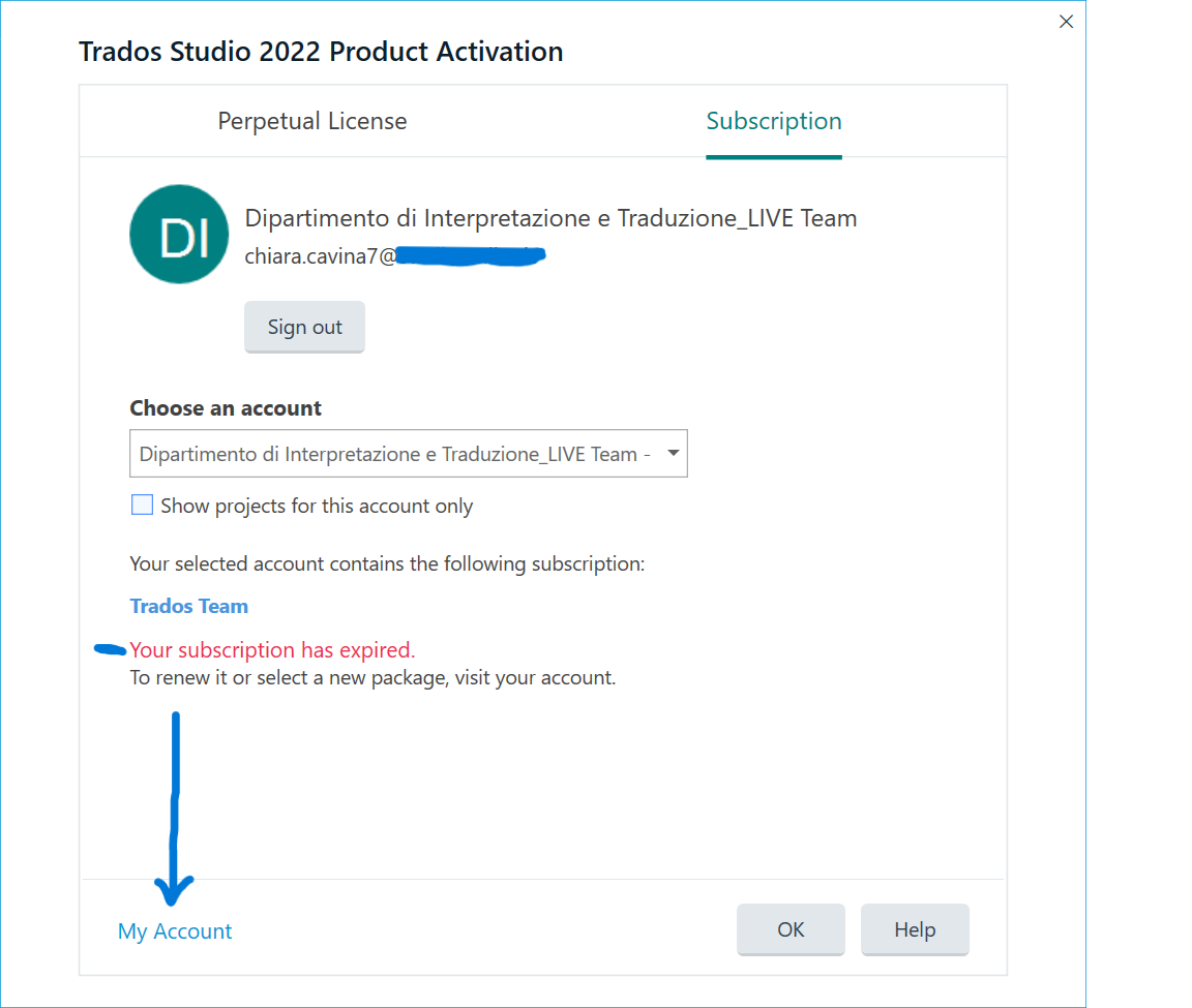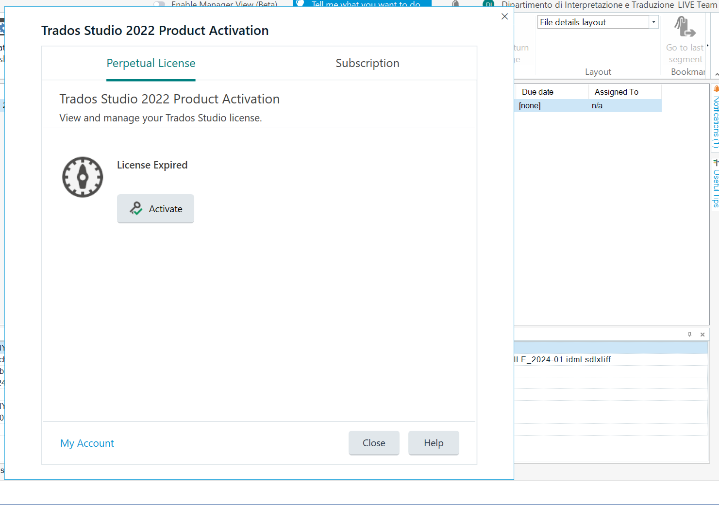 I have a Trados Team Subscription through my University and I'm using Trados Studio 2022. When I open Trados to translate and I select my University's account, to which my profile is linked, I'm not given the option to Activate the subscription. It just says that the subscription has expired and the Activate button doesn't show. I've already tried logging in and logging out from my profile and I've visited the account linked to the Subscription (my University's account), but this problem keeps coming up. In the last few days I've had this problem but in the end I was always able to activate the subscription. Today I'm not able to do it. Is there a solution for this?