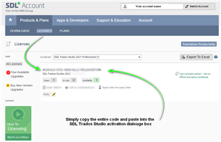 2) Language Cloud Subscription- Trados Live Subscription models, do not require an activation code and, are activated via your RWS (formerly SDL) Cloud account.