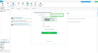 To Activate your Language Cloud Subscription, select Language Cloud Subscription and enter your RWS registered email address and password