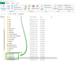 When you click the Studio 2021 folder, you will find a similar subset of folders as follows