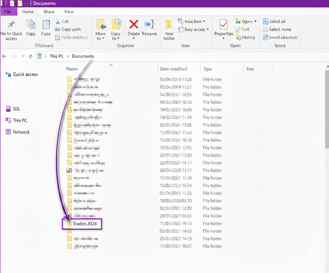 when you navigate to your Documents folder (File Explorer), you will notice, that Trados Studio has created a default folder-