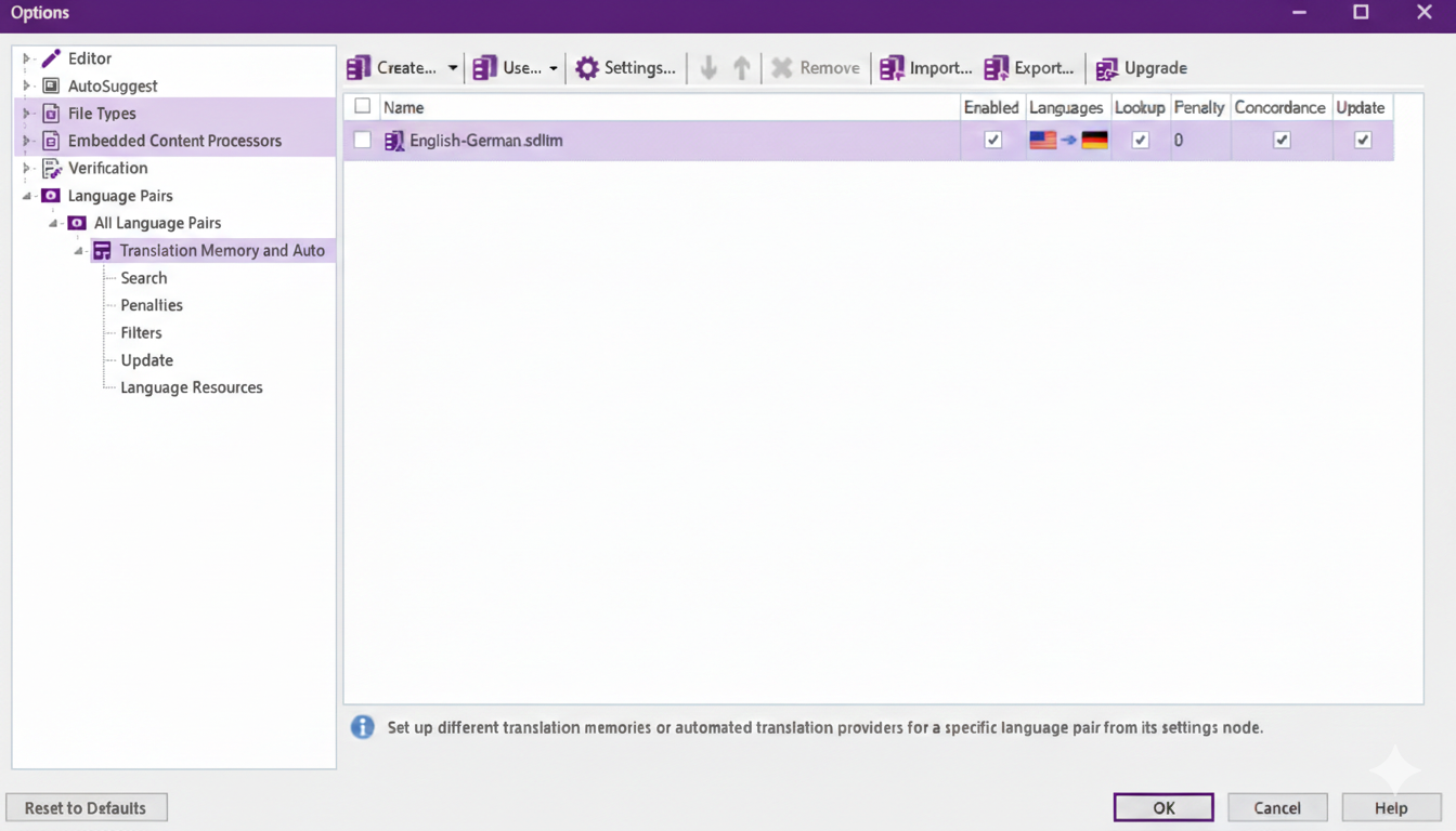 • +Translation Memory
