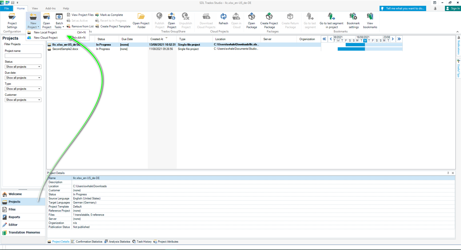 If you create a 'Translate single document' or 'New Local project', you can only translate these in Trados Studio and cannot (yet) upload these to the cloud.