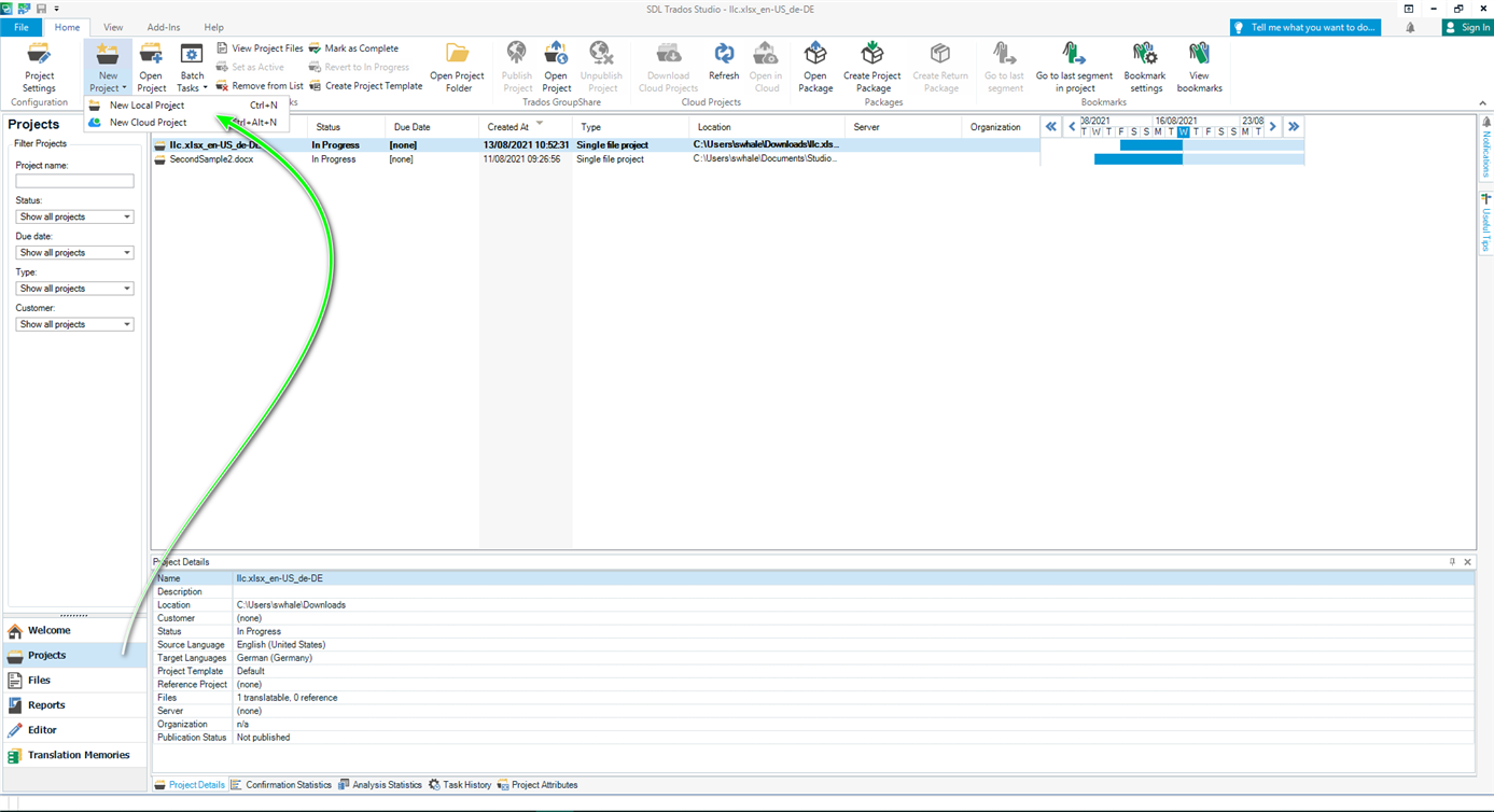 If you create a 'Translate single document' or 'New Local project', you can only translate these in Trados Studio and cannot (yet) upload these to the cloud.