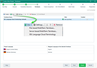 Select Termbase(s) provider(s) as required