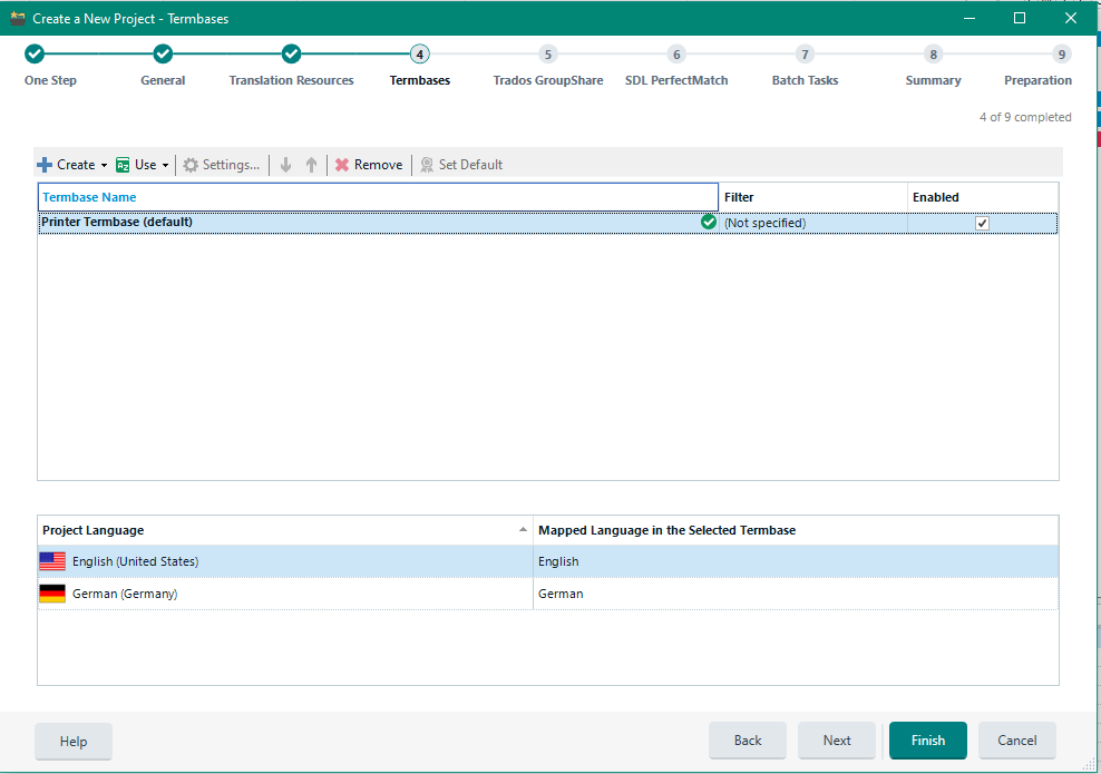 If you have installed the Sample files- you will have the sample Printer Termbase C:\Users\YOUR NAME\Documents\Studio 2021\TermBase