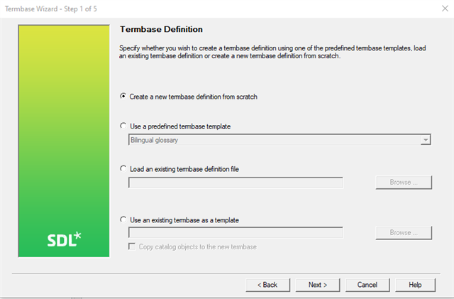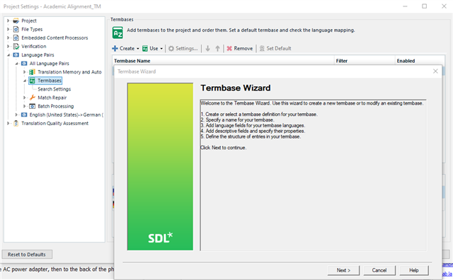 The Termbase Wizard will now open and guide you through the 5 steps...
