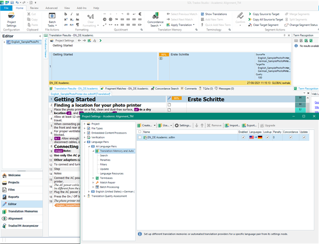 Now after adding the TM, you can start to see the suggestions originating from the TM