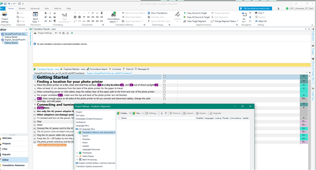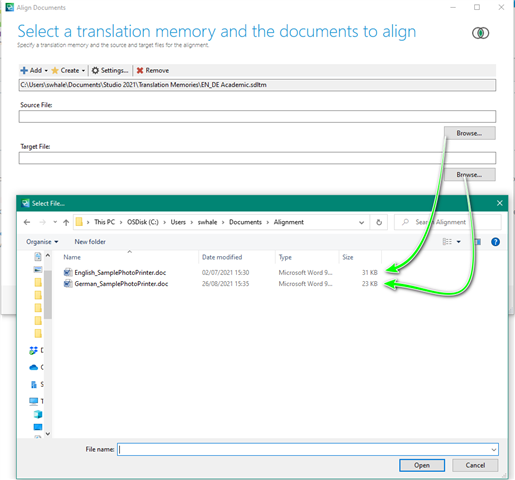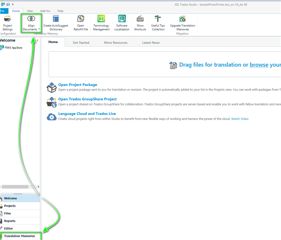 To 'Align' the documents, select Align Documents in the Welcome view (or from Translation Memories view)