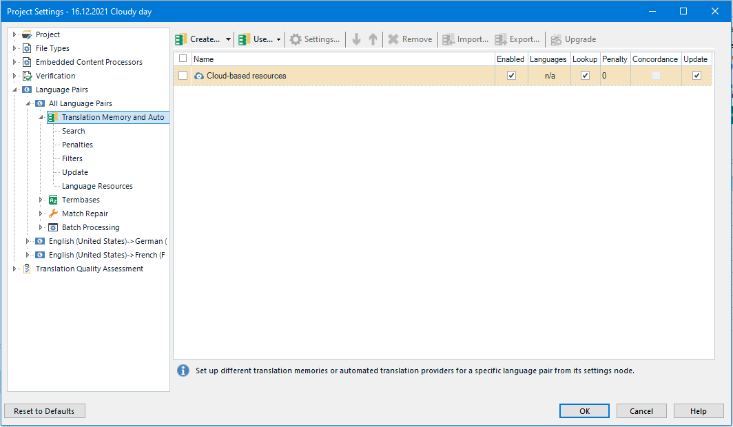 Please note that 'SDL Machine Translation' and 'SDL Language Cloud' are renamed to Language Weaver and Cloud-based Resources.