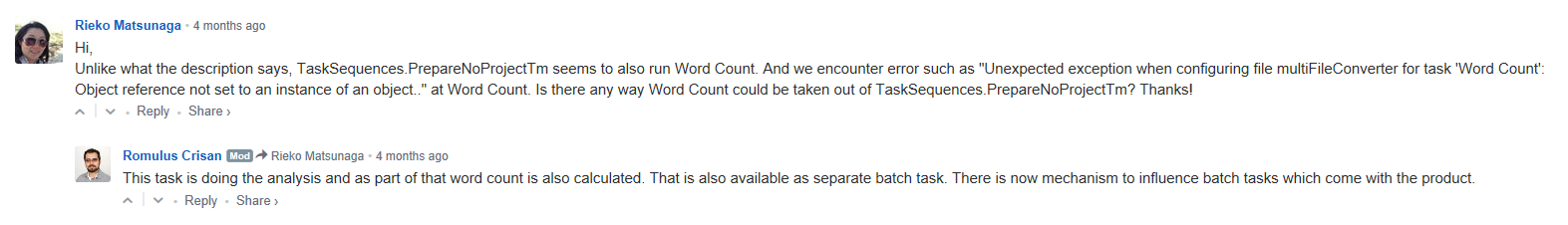 Exception when executing PrepareNoProjectTm: Unexpected exception when configuring file multiFileConverter for task 'Word Count': Object reference not set to an instance of an object..