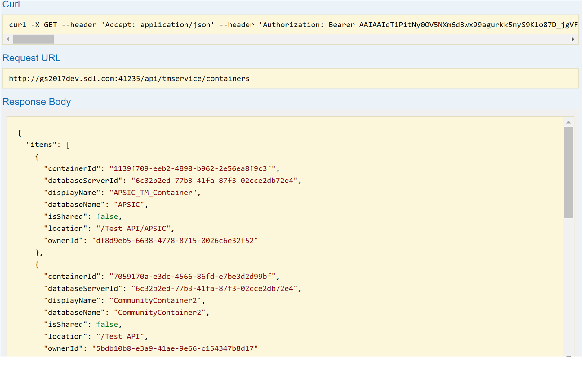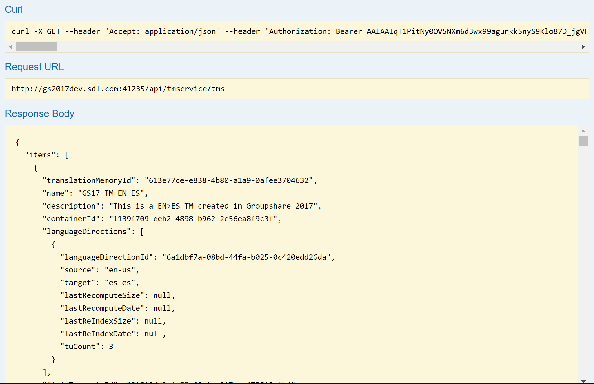 but when i open the Translation Memory Service page (i.e. http://[myserver]:41235/docs/ui/index#/) I can't test any call that requires authentication, even If i copy and paste the authorization from the GroupShare Rest API page.