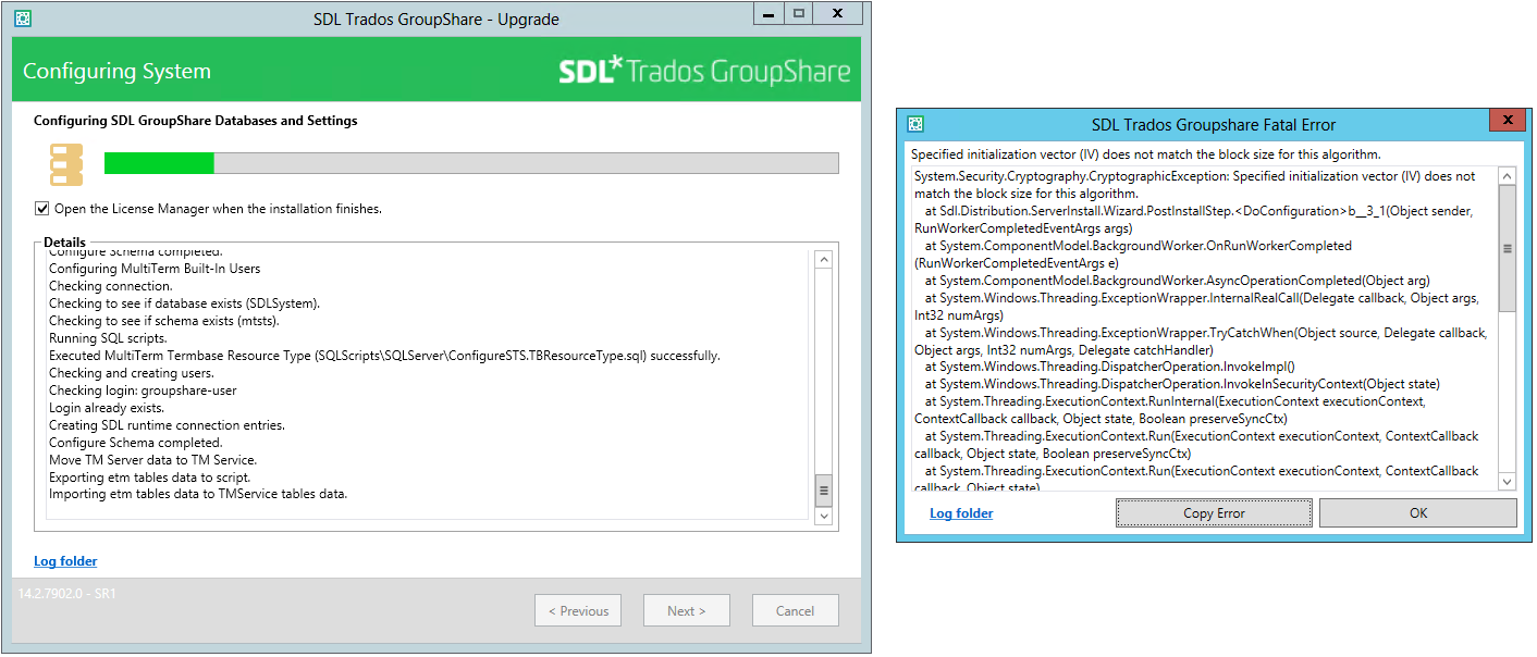 Upon clicking "OK" on the Fatal Error dialog both disappear and the installation is brought to an abrupt halt. Of course, GroupShare 2017 is now partly installed but is unusable. Yes, I can revert to a backup of the previous (2015) installation but I'm unable to upgrade to 2017.