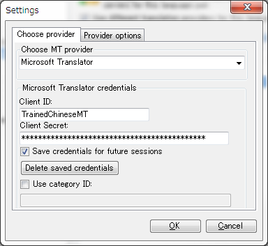 I had a look at the source file you sent via email and your problem might be related to the way the credentials are added to the project. If this are not correct the TM will not be enabled. Based on the uri you have on the template you add one or two type of credentials. The second doesn't seem to be a valid language weaver credential since you need to provide the API key.