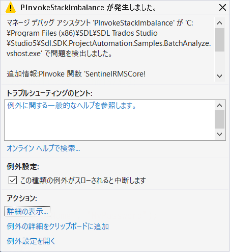 呼び出しているアセンブリ: Sdl.Common.Licensing.Provider.SafeNetRMS, Version=5.0.0.0, Culture=neutral, PublicKeyToken=c28cdb26c445c888