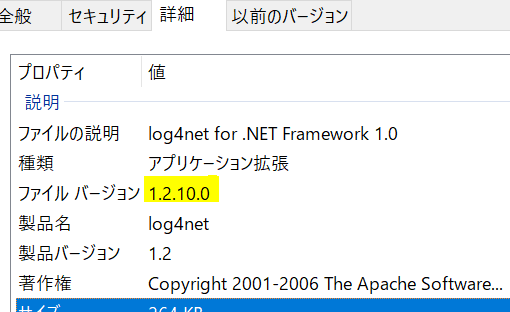 ログ: DisplayName = log4net, Version=1.2.10.0, Culture=neutral, PublicKeyToken=c28cdb26c445c888