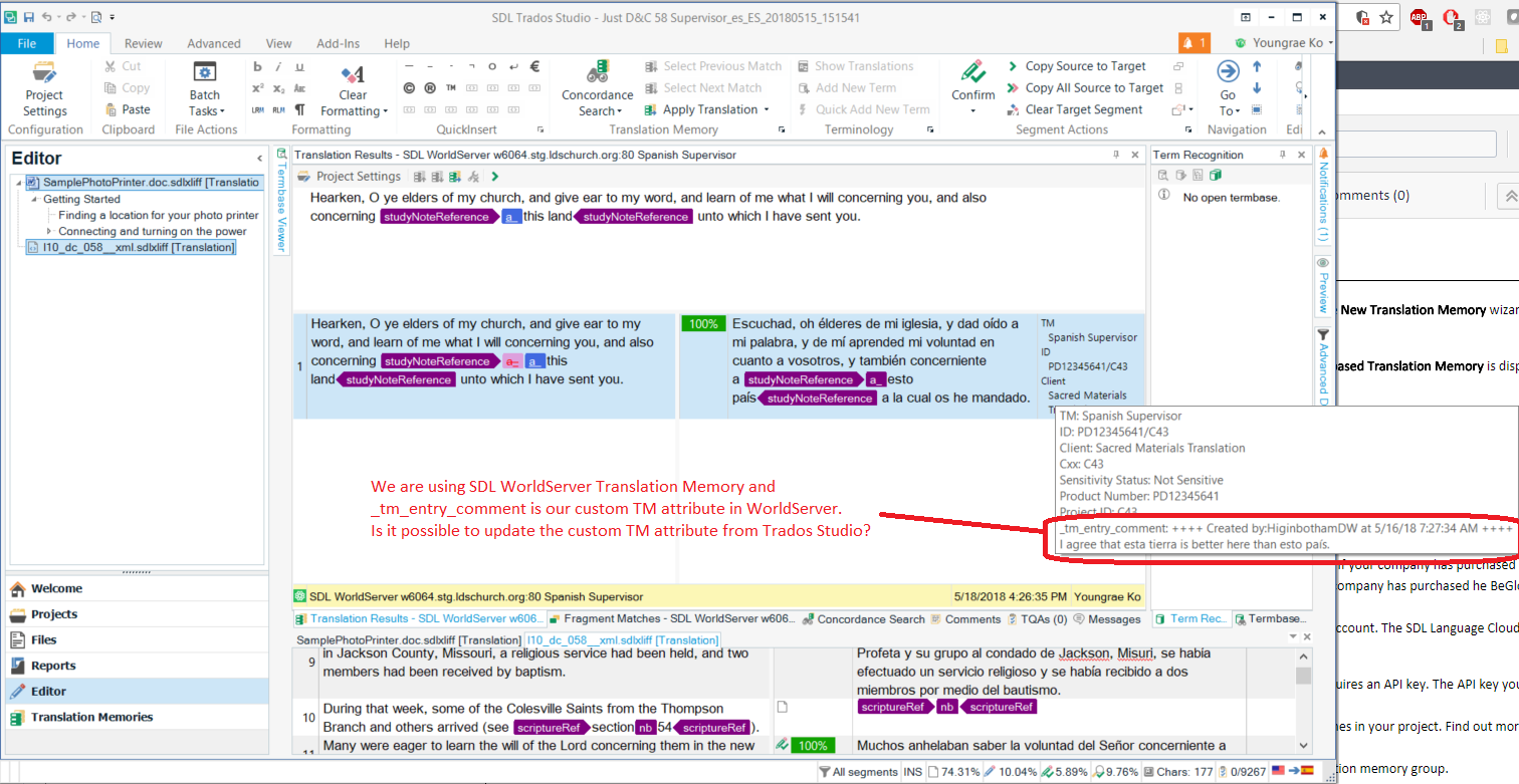 _tm_entry_comment is our custom TM Attribute in WorldServer.