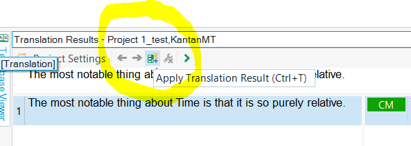 Screenshot of Studio Developers Q&A interface highlighting the 'Apply Translation Result (Ctrl + T)' button in the Translation Results toolbar.