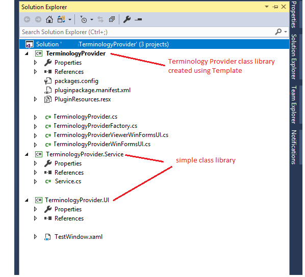 In my solution, TerminologyProvider.Service project and TerminologyProvider.UI project referenced into TerminologyProvider class library project.