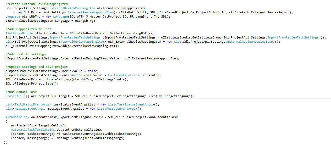 Why do I get this error message when I run the manual task method: UpdateFromExternalReview?