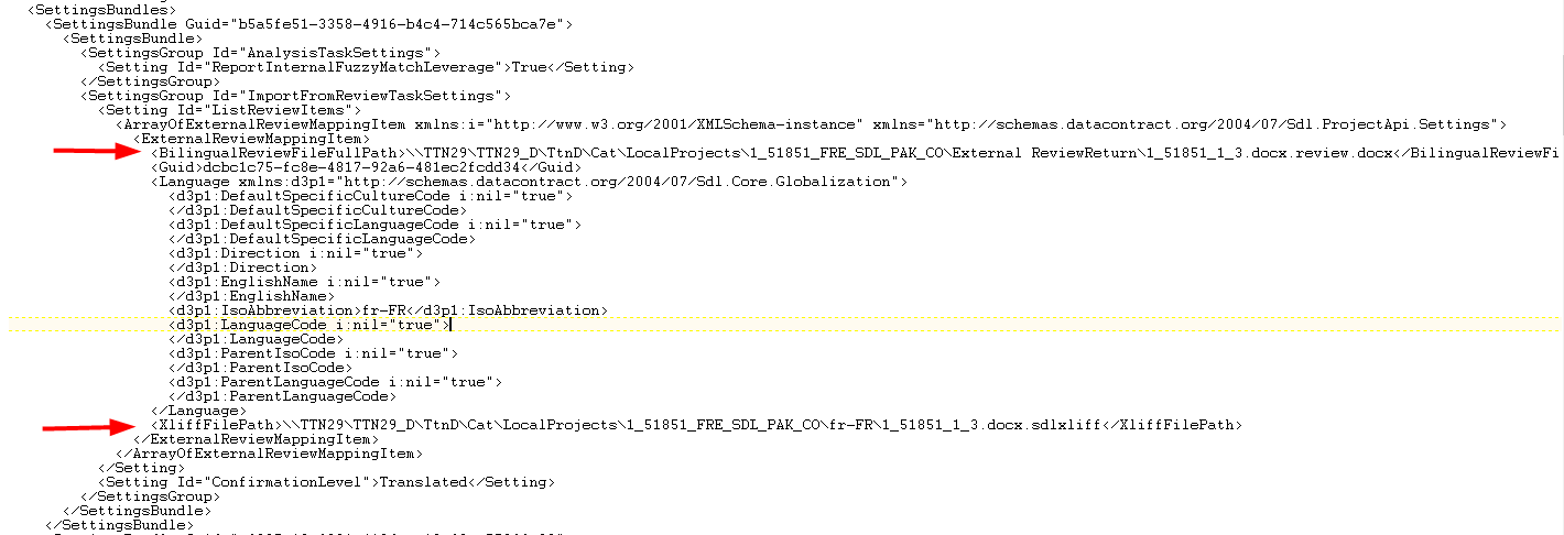 "No bilingual review file mapping was specified for: [\\\\TTN29\\TTN29_D\\TtnD\\Cat\\LocalProjects\\1_51851_FRE_SDL_PAK_CO\\fr-FR\\1_51851_1_3.docx.sdlxliff]"
