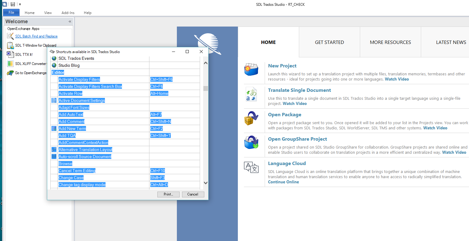 If the shortcut data indicated in 'Home->Show Shortcut' in Trados can be got as the menu data of my application, I'm thinking trouble of input is little and convenient.