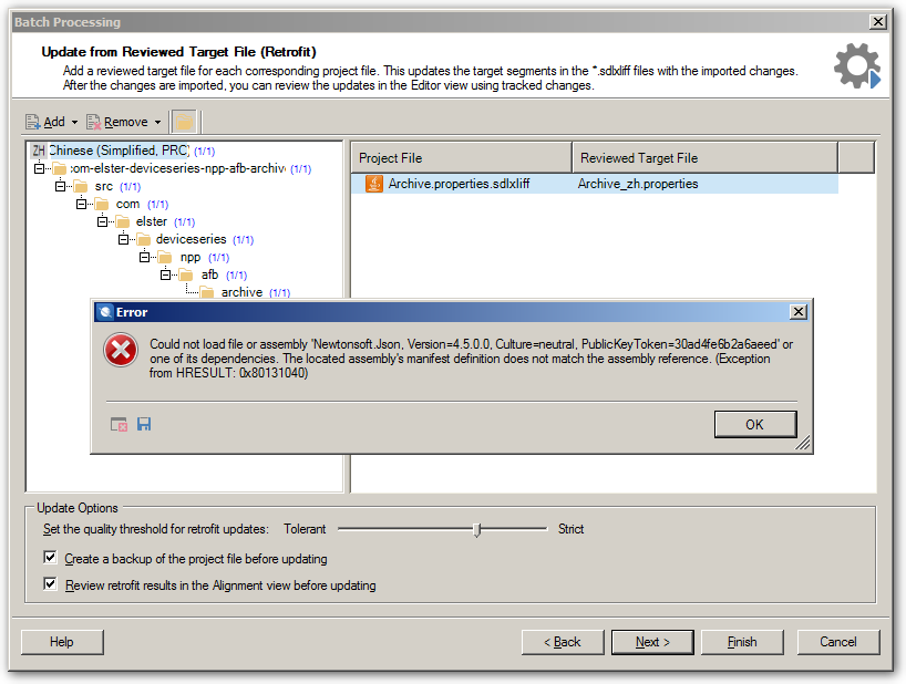 at Sdl.TranslationStudio.Common.BatchProcessing.RetrofitWizardPage.OnNext()