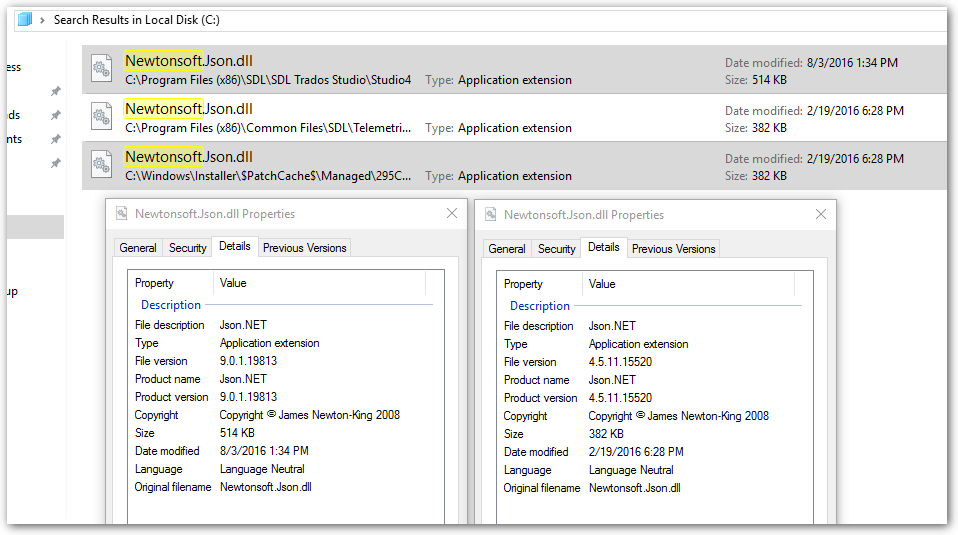 Newtonsoft Json.NET exception when running project automation on Windows 10