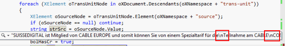There are New Line characters in the source segment:
