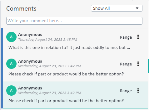 Hello, I'd like users to be able to see by whom the comments in their tasks were made, even if they're are not located in the same organization. We have all translators and reviewers on the root location but still for some it is impossible to see where the comments are coming from... which makes communication between the involved persons in a workflow a bit more difficult. "Anonymous" as shown below does not really help here..