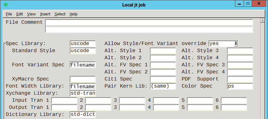 The local job ticket asks for the Spec Library, the Standard Style, the Font Variant Spec [which is always the same], the XyMacro Spec, the Font Width Library [which is always the same], and so on. If the redundant copy of the Font Variant file is not in the local folder, then the jobs don't work.