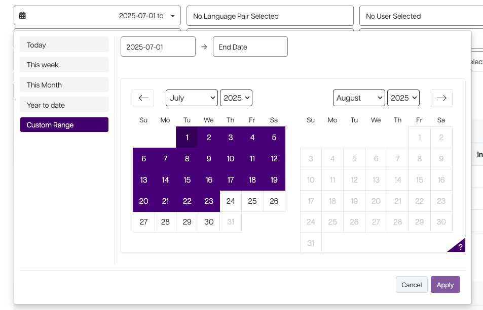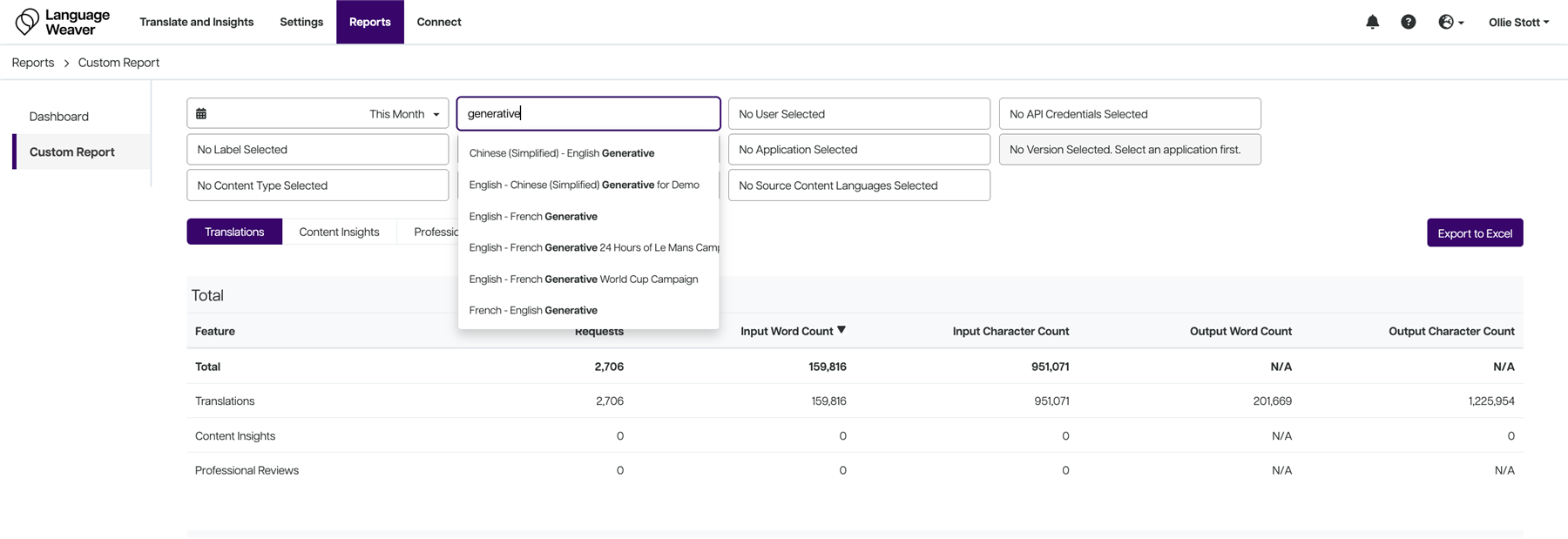 - Enabled searching of model type in the Language Pair field in Custom Reporting