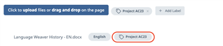 Once 'Labels' are defined by the administrators, on the 'Translate' page, users can use the button '+Add Label' to assign one or multiple labels to their translation jobs.