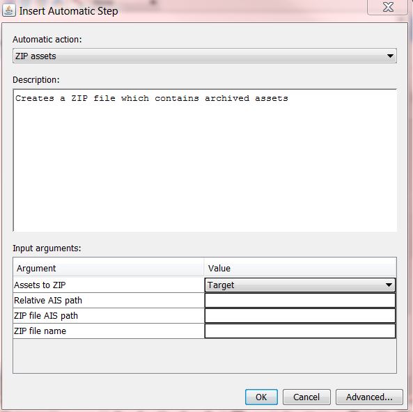 Zip file AIS path - Use the same path in the Zip asset parameters.