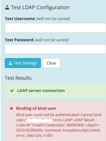 Since the upgrade to SDL ETSÂ 7.3.4 the Test LDAP Configuration is failing to bind the user if using Only this LDAP bind user can do a search option, despite SDL ETS being able to use these credentials to return Login Groups and users are able to authenticate into the system.