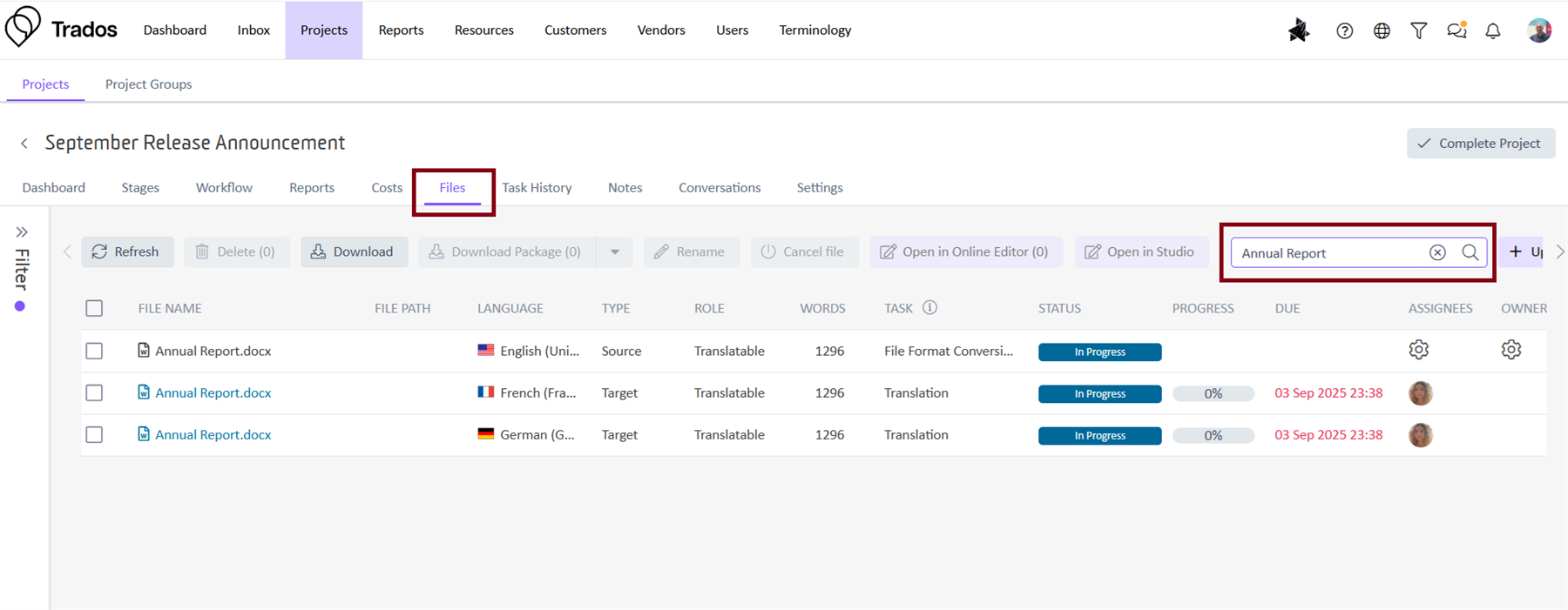 Earlier this year, we introduced the ability to open multiple files in the Online Editor, initially available for tasks initiated from the Trados UI. By popular request, this capability has now been extended to customer reviewers working in Customer Portal. As with the Trados implementation, this is supported when files belong to the same project and target language.