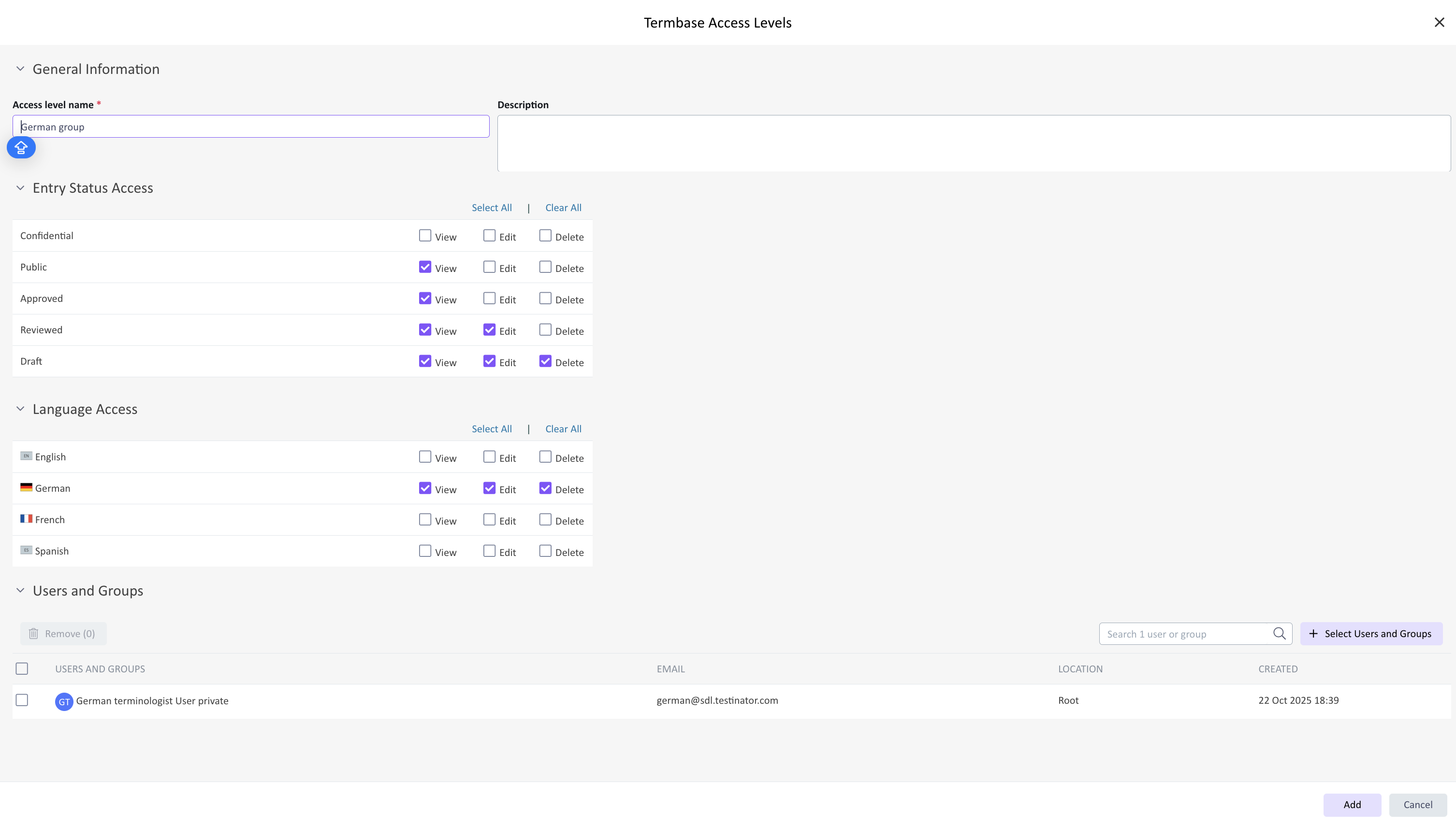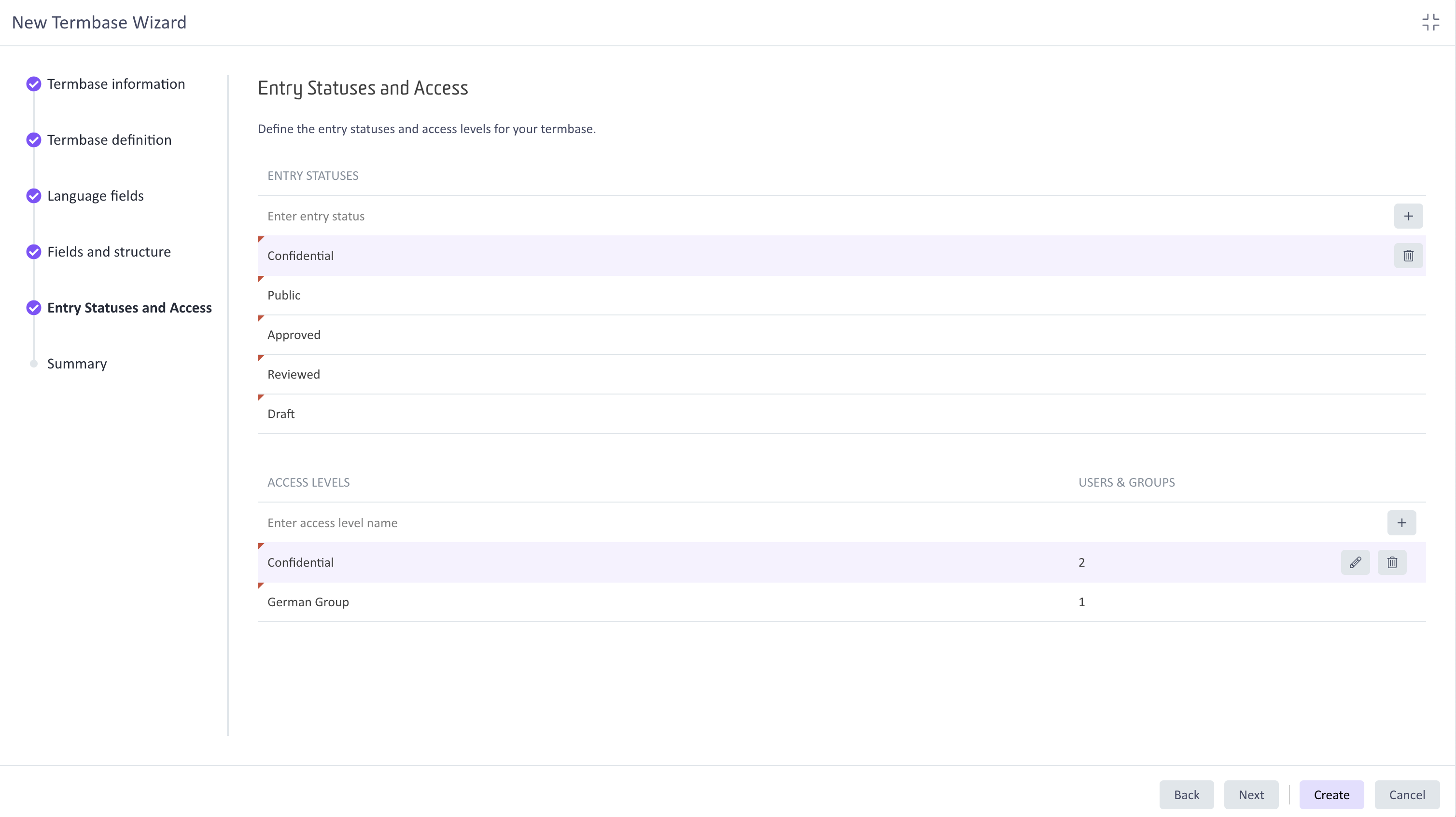 Entry Statuses and Access Levels for more controlled access to Termbases