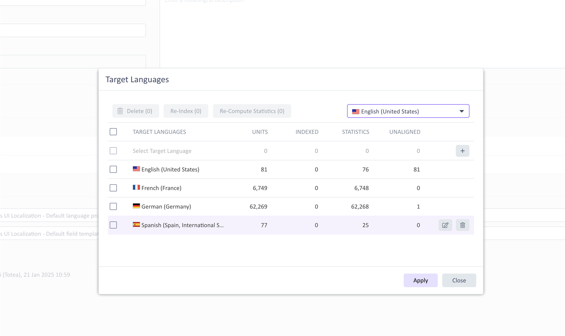 We strongly recommend reviewing and structuring your TMs proactively to ensure individual language pairs remain within this limit. Our Professional Services team is available to support you with TM optimisation and management best practices.