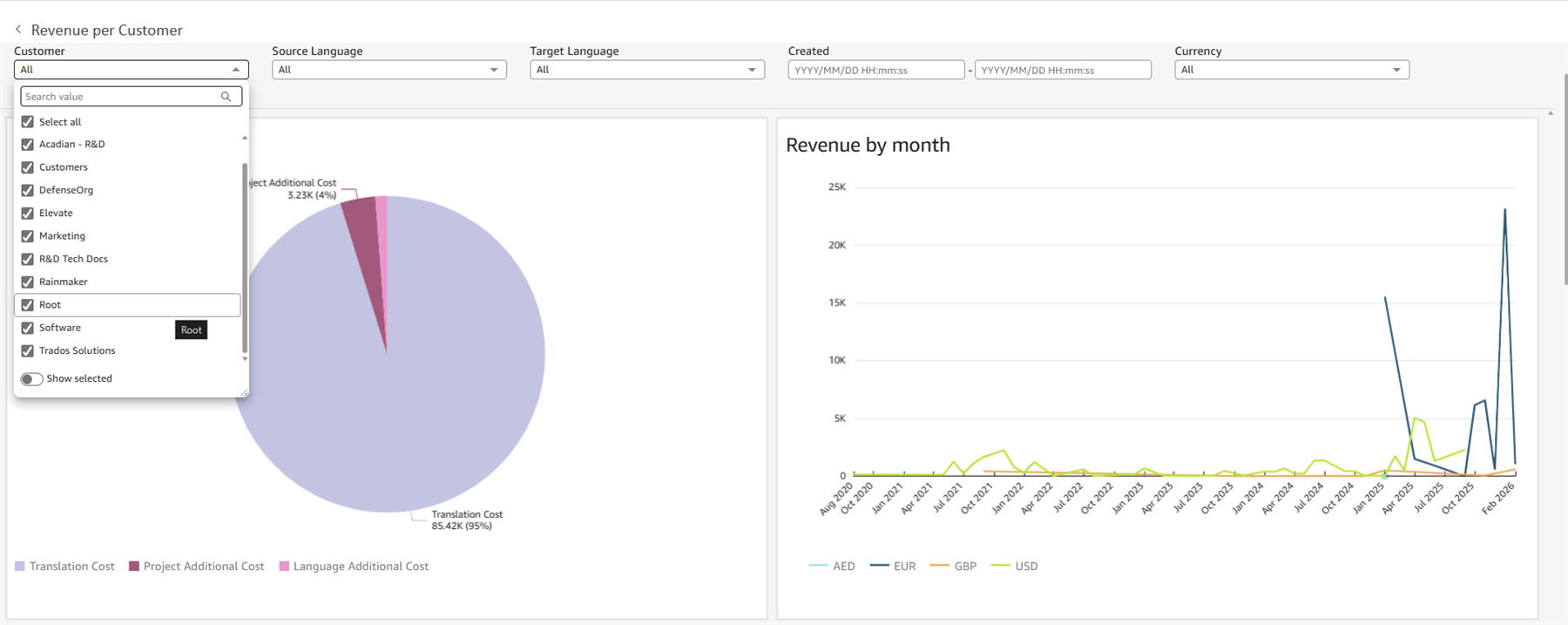 Reporting capabilities have been extended to include projects created at the “Root” and “Customers” levels. Both built‑in and custom reports now include these projects, improving visibility across your entire project hierarchy.