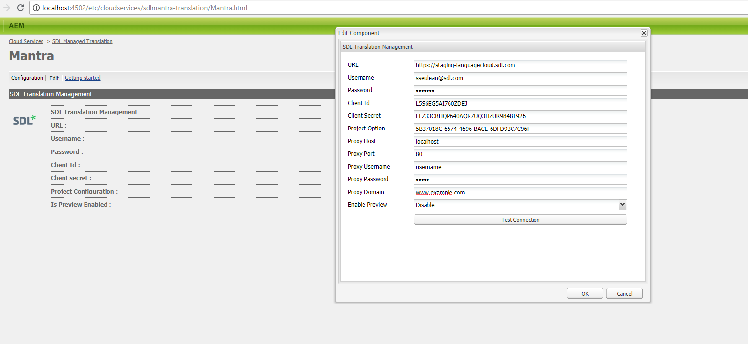 - Save the configuration and start a translation project.All the requests should be successfully authorized by the proxy configuration.