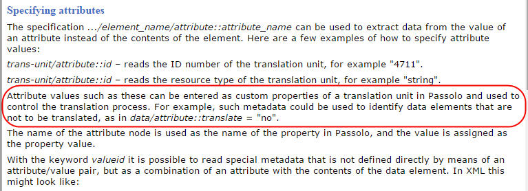 It has only one more parent node with no translatable text in it. Everything that is translatable is under string. I'd like such strings to be excluded from or perhaps hidden in the string list in Passolo.