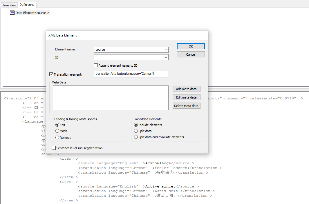 I'm having a bit of a struggle getting my head round the XPath-but-not-quite-XPath used when configuring a custom XML parser. Specifically, I am trying to use the translation element to have Passolo read/write the translation from a different element to the source.
