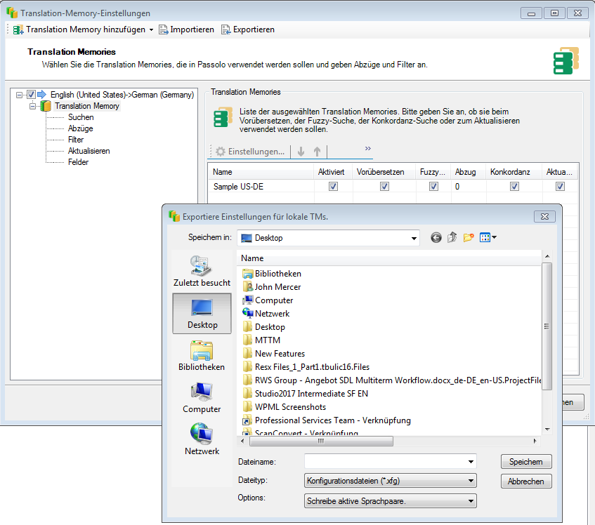 In Passolo 2016 if I try to export my settings for Trados Studio to an .xfg file under Add-Ins, Passolo nags that no active language pair has been selected for the export. This is not true. If I select the only option available "Write/Save all settings" in the dialog, it initially appears that Passolo saves the settings, but in reality it does nothing. This appears to be a major glitch. Has anyone experienced this before or better yet, have a solution?
