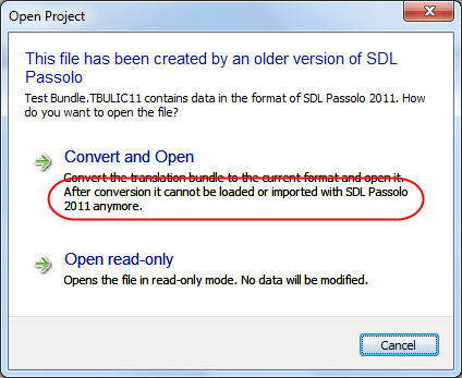 Our client made a bundle using Passolo 11.9 (2011). We could not open this bundle and downloaded latest Passolo version 2015 and then opened the bundle.