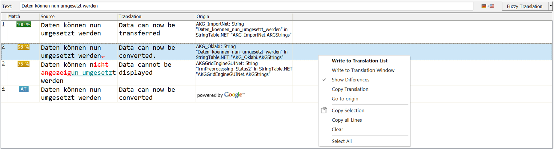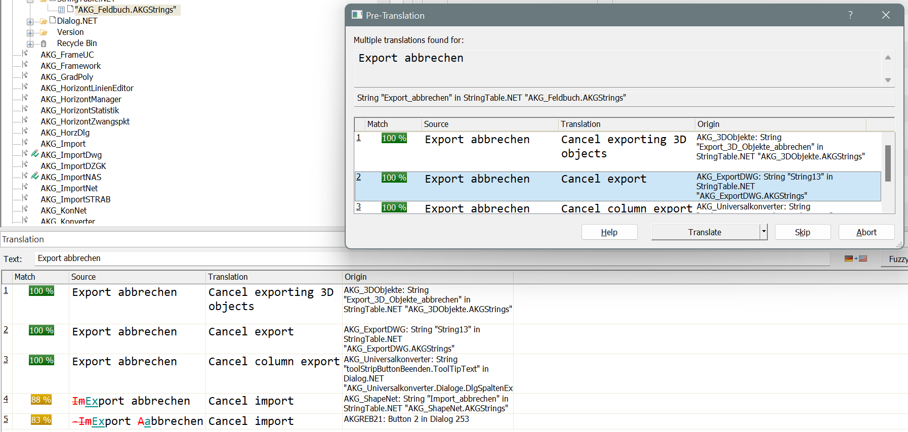What is worse, is that if I select one translation and hit ENTER, then it *should* place the translation to the translation list (see active command in context menu):